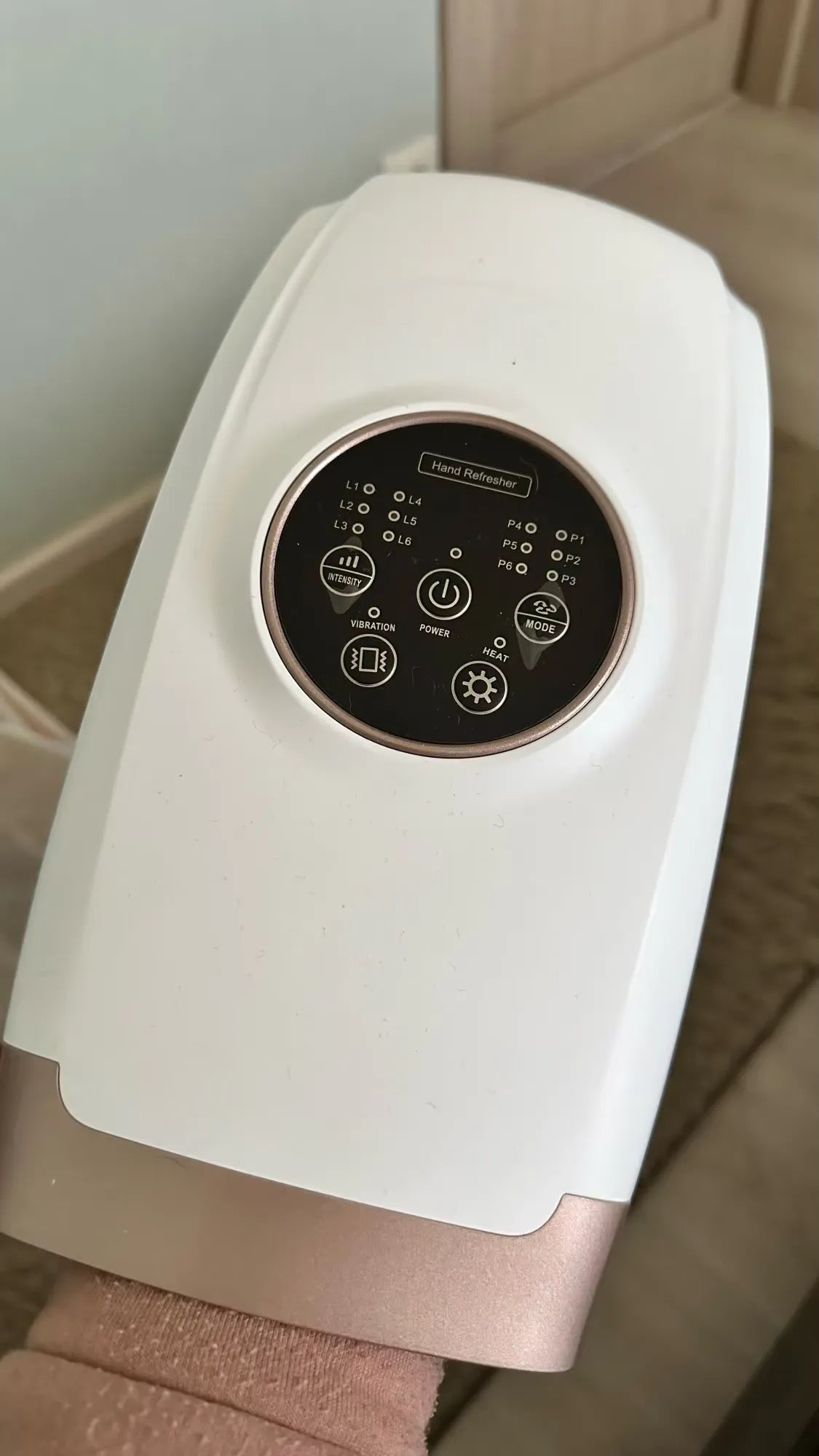 When I first found this product, I wasn't sure if it would really work for me, but now, I'm obsessed. The intensity options are perfect for tailoring it to my needs - more pressure after knitting, less on a lazy Sunday. The heating is gentle and makes my hands feel like new. Package is sleek and simple to use. Hands down one of my favorite relaxation tools.